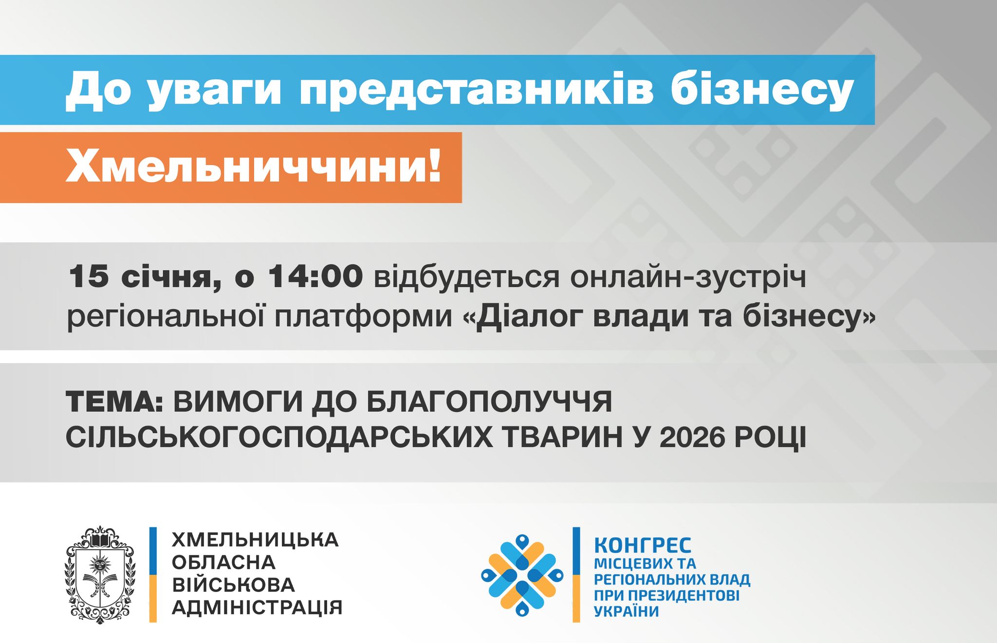 Запрошую керівників підприємств і всіх зацікавлених долучитися до онлайн-зустрічі в межах платформи «Діалог влади та бізнесу», яка відбудеться у четвер, 15 січня, о 14:00.