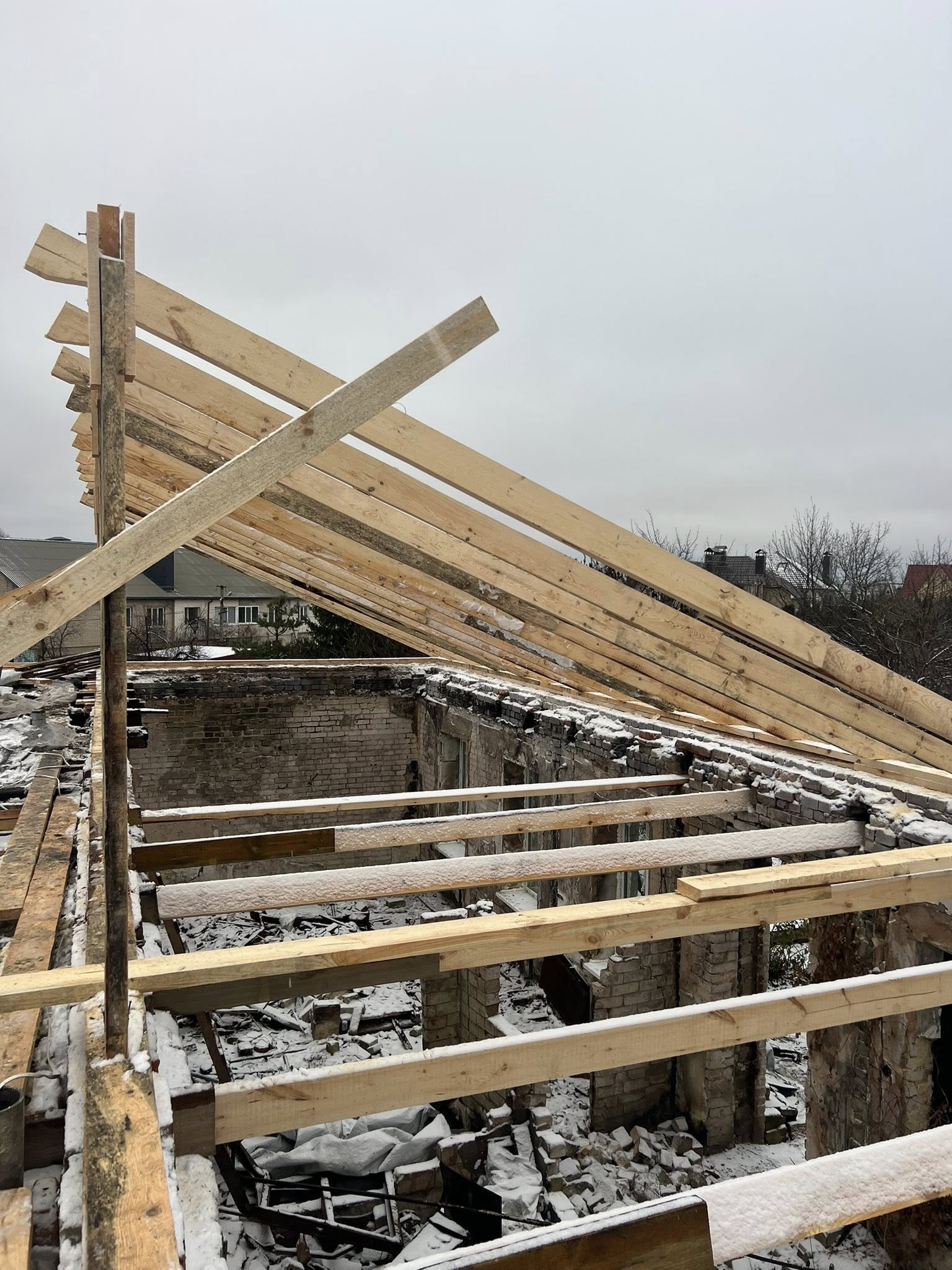 Проводяться роботи з капітального відновлення зруйнованих покрівель. Також заплановано заміну вікон у тих квартирах, де вони ще не були відновлені.