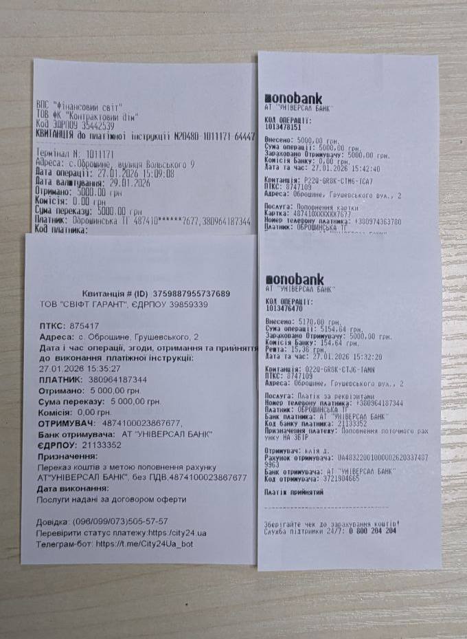 На кожен зі зборів було передано по 10 000 гривень (20 000 грн — з коштів, переданих молодіжним вертепом «Діти світла» с. Оброшино, та 10 000 грн — з виручених на благодійному аукціоні).
