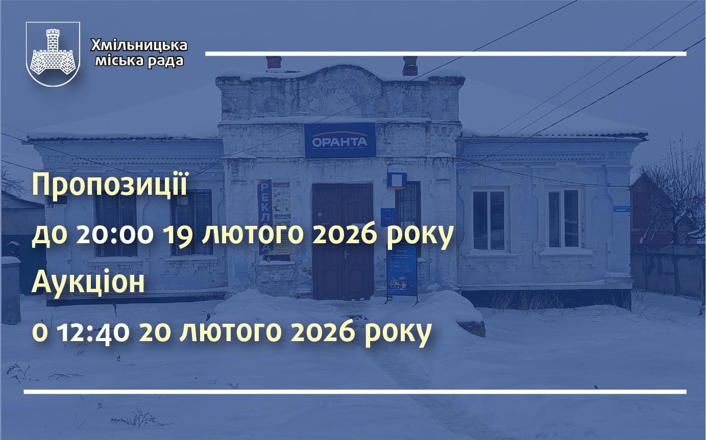 📢 Хмільницька міська рада повідомляє про проведення продажу на аукціоні об’єкта малої приватизації: