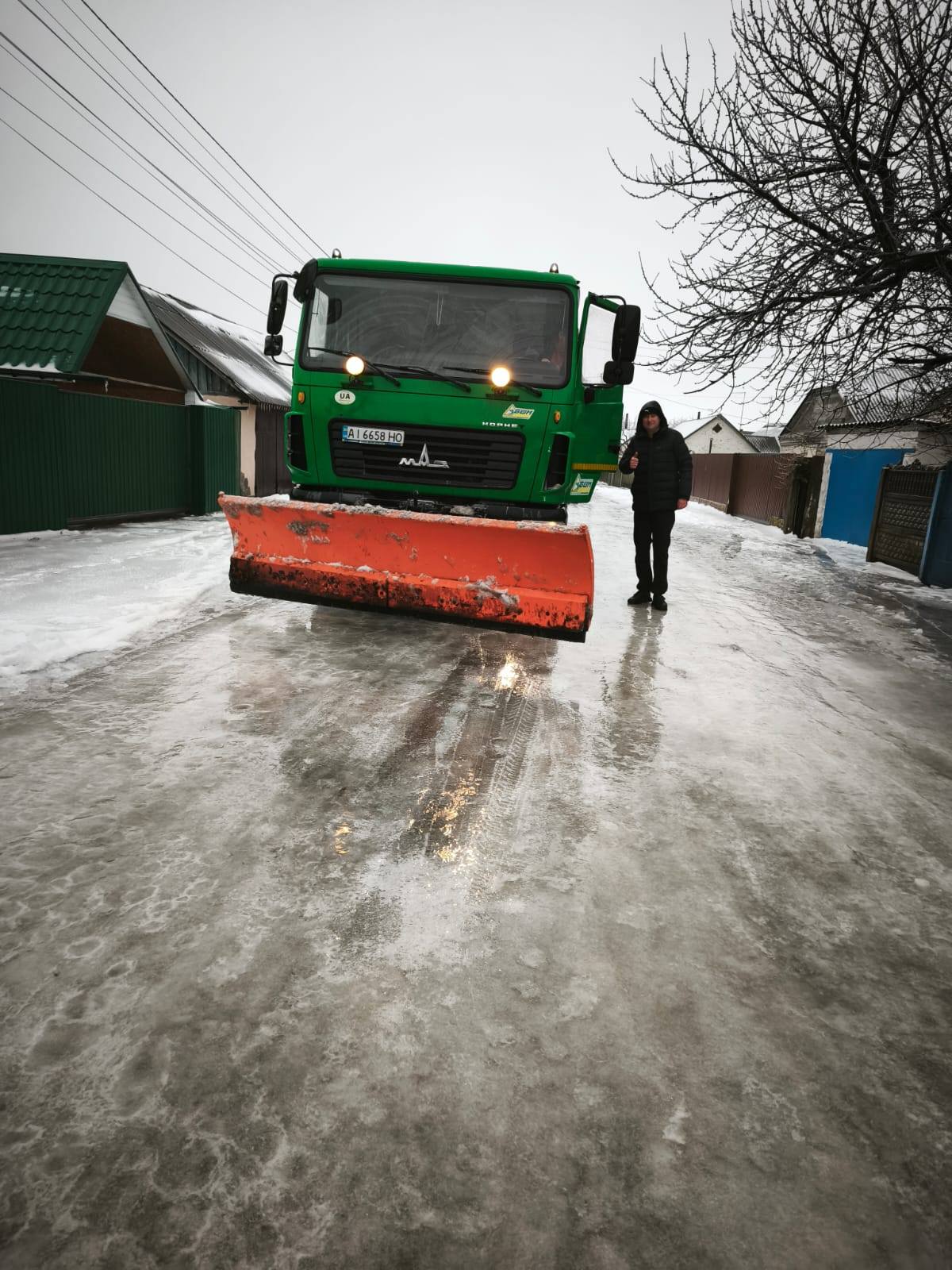 На території громади задіяно 7 одиниць техніки та 12 працівників. Для посипання доріг і тротуарів використано 35 тон протиожеледної суміші.