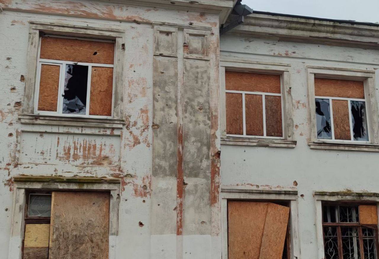 Побиті адмінбудівля, 2 гімназії, спортивна та мистецька школи, приватне підприємство, бюро ритуальних постуг, 8 осель, 6 господарських споруд, сонячні панелі, авто, лінія електропередач, газогін.