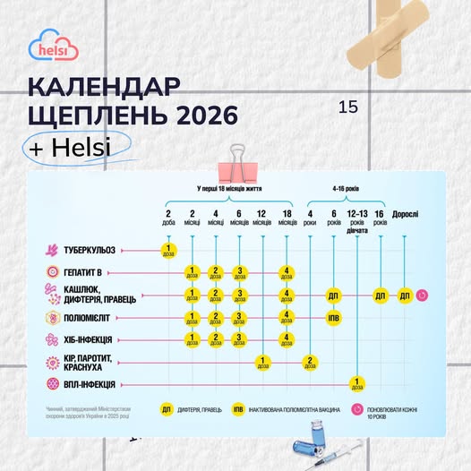 🏥 Усі вакцини за календарем 2026 року безоплатні та доступні у медичних закладах по всій Україні.