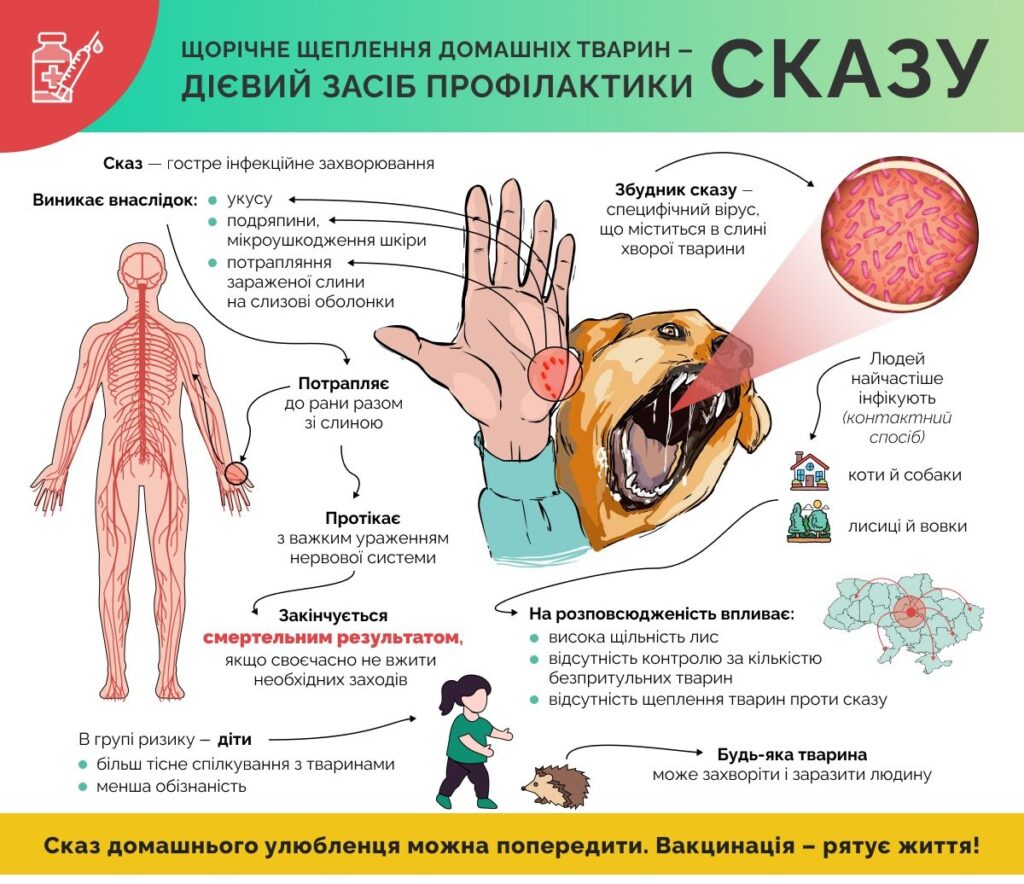 Нагадуємо, що сказ — це небезпечне інфекційне захворювання, яке уражає центральну нервову систему та є смертельним як для тварин, так і для людей. Власники домашніх тварин зобов’язані своєчасно проводити вакцинацію, забезпечувати належний догляд за улюбленцями та не допускати їх безконтрольного перебування на вулиці.