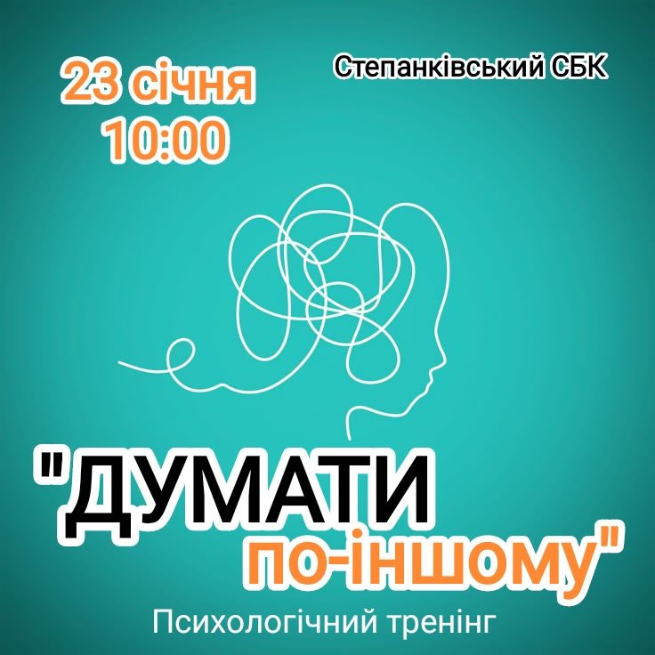 🧠 Психологічний тренінг «Думати по-іншому» 23 січня 2026 року в будинку культури села Степанки. Початок о 10:00 год. Іноді достатньо змінити кут зору, щоб стало легше дихати й жити. Запрошуємо всіх охочих!