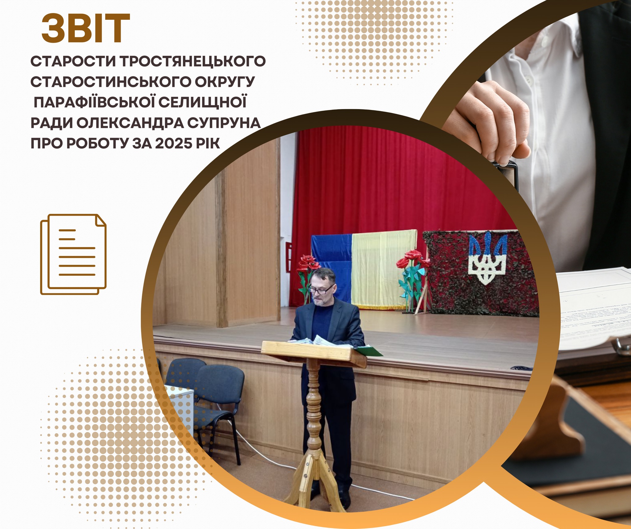 Староста Тростянецького старостинського округу Олександр СУПРУН 24 грудня відзвітував про результати діяльності за 2025 рік. Звіт охоплює ключові сфери життєдіяльності сіл Тростянець, Верескуни та Барвінкове: від соціальної підтримки населення до масштабної допомоги Збройним Силам України.
