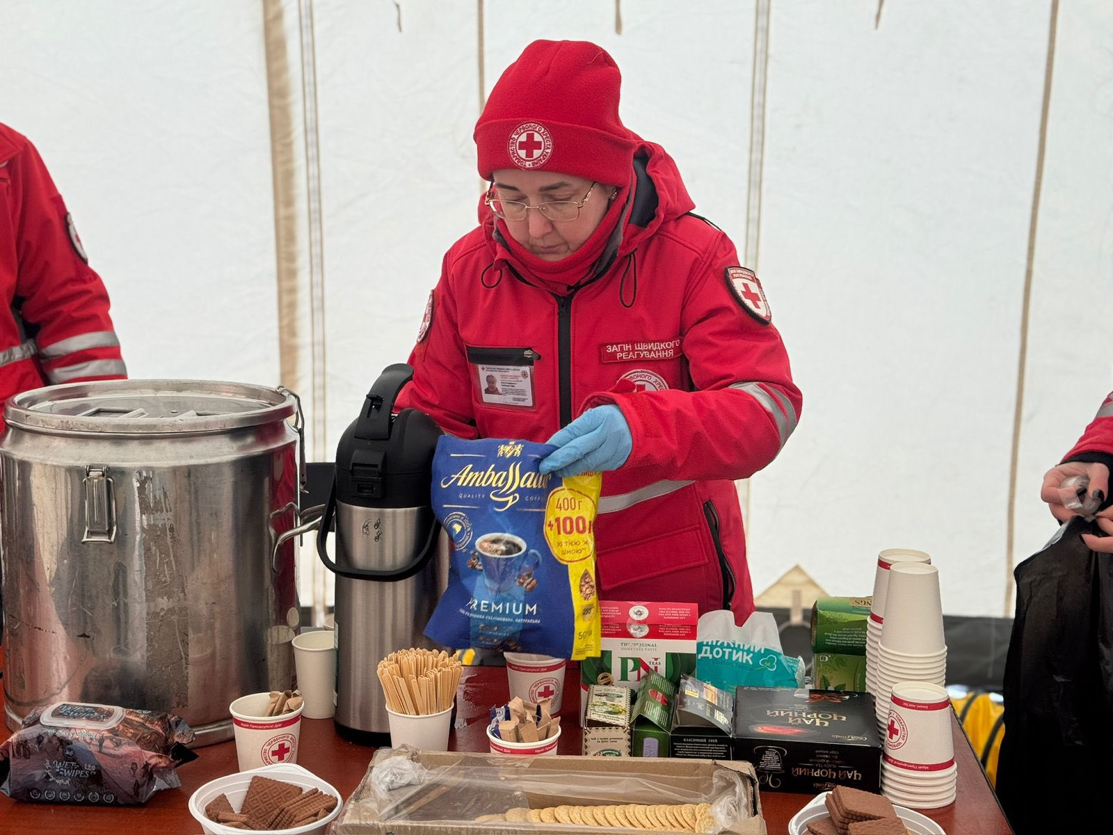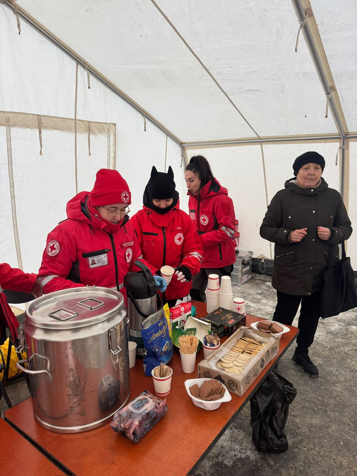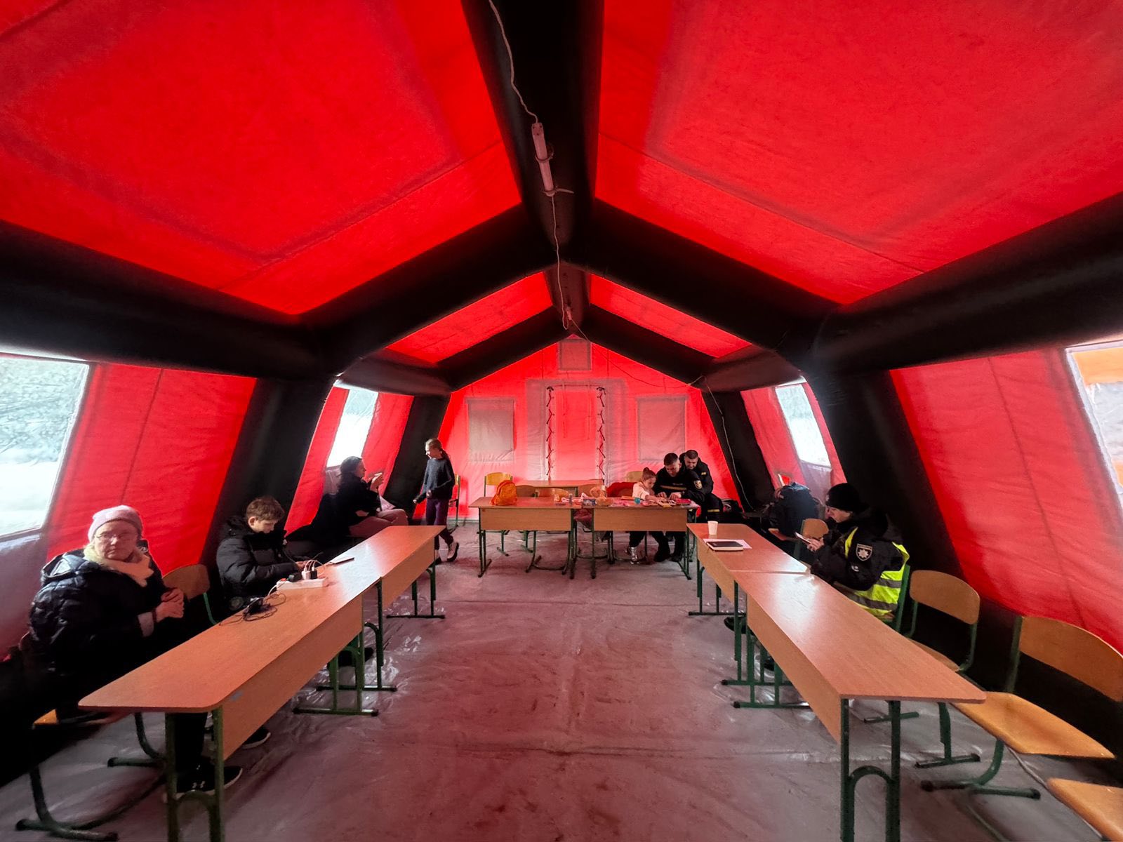 У наметах тепло, є можливість випити гарячого чаю, зарядити телефони та інші предмети.
