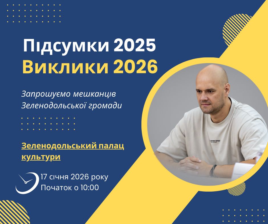 У місті Зеленодольську відбудеться традиційна зустріч міського голови Дмитра Невеселого з мешканцями громади у форматі відкритого діалогу. Обговоримо результати роботи у 2025 році та окреслимо ключові завдання на 2026 рік.