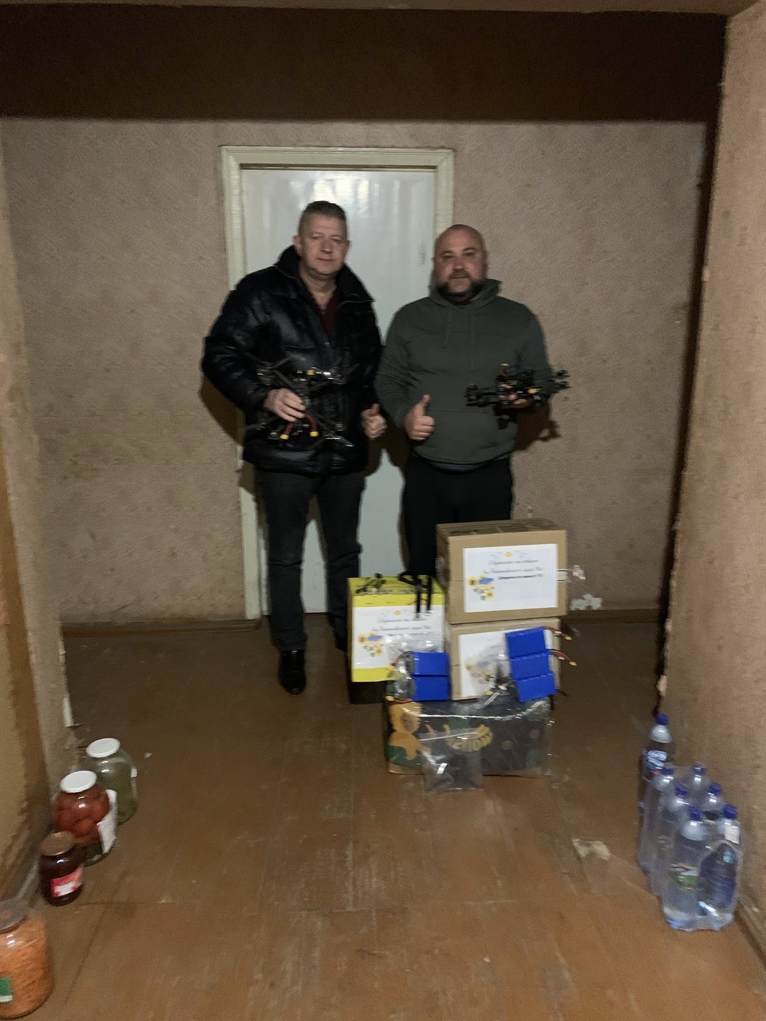 Цього разу доставили 15 FPV-дронів для наших захисників. По 5 дронів передано Руслану Г., Володимиру (Коту) та Олексію (Гайці) – нашим землякам зі Сновидович та Рокитного, які сьогодні боронять Україну на Ізюмському, Гуляйпільському та Купʼянському напрямках.