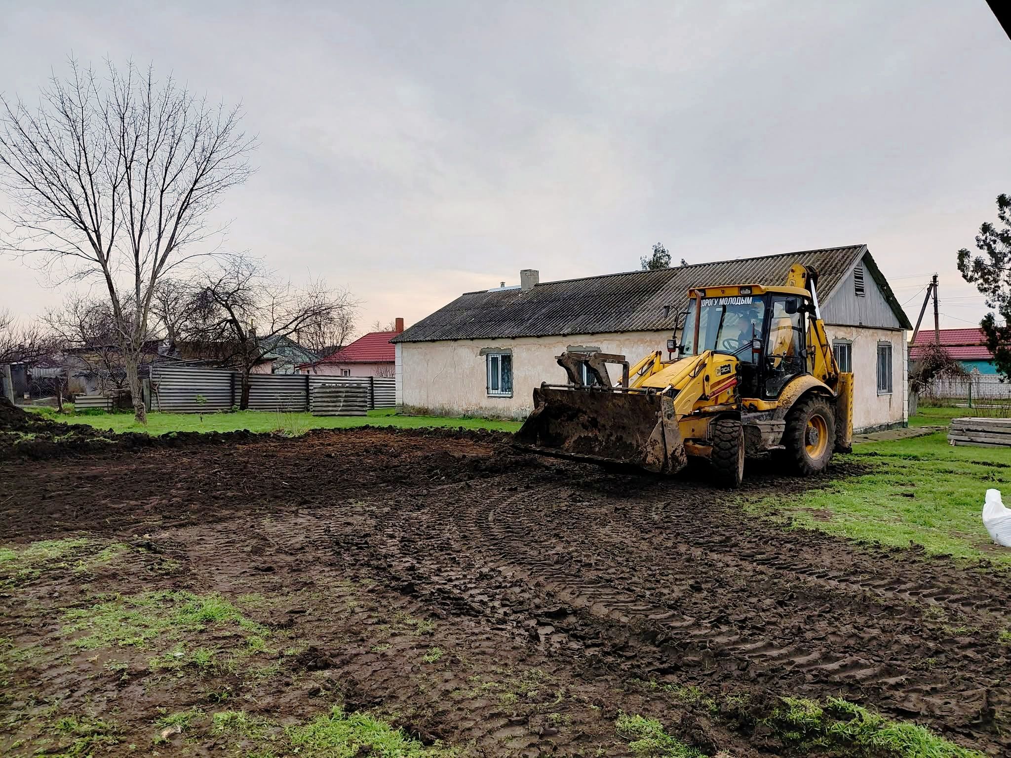 ✅спеціальна техніка проводить вирівнювання території під майбутній фундамент;
