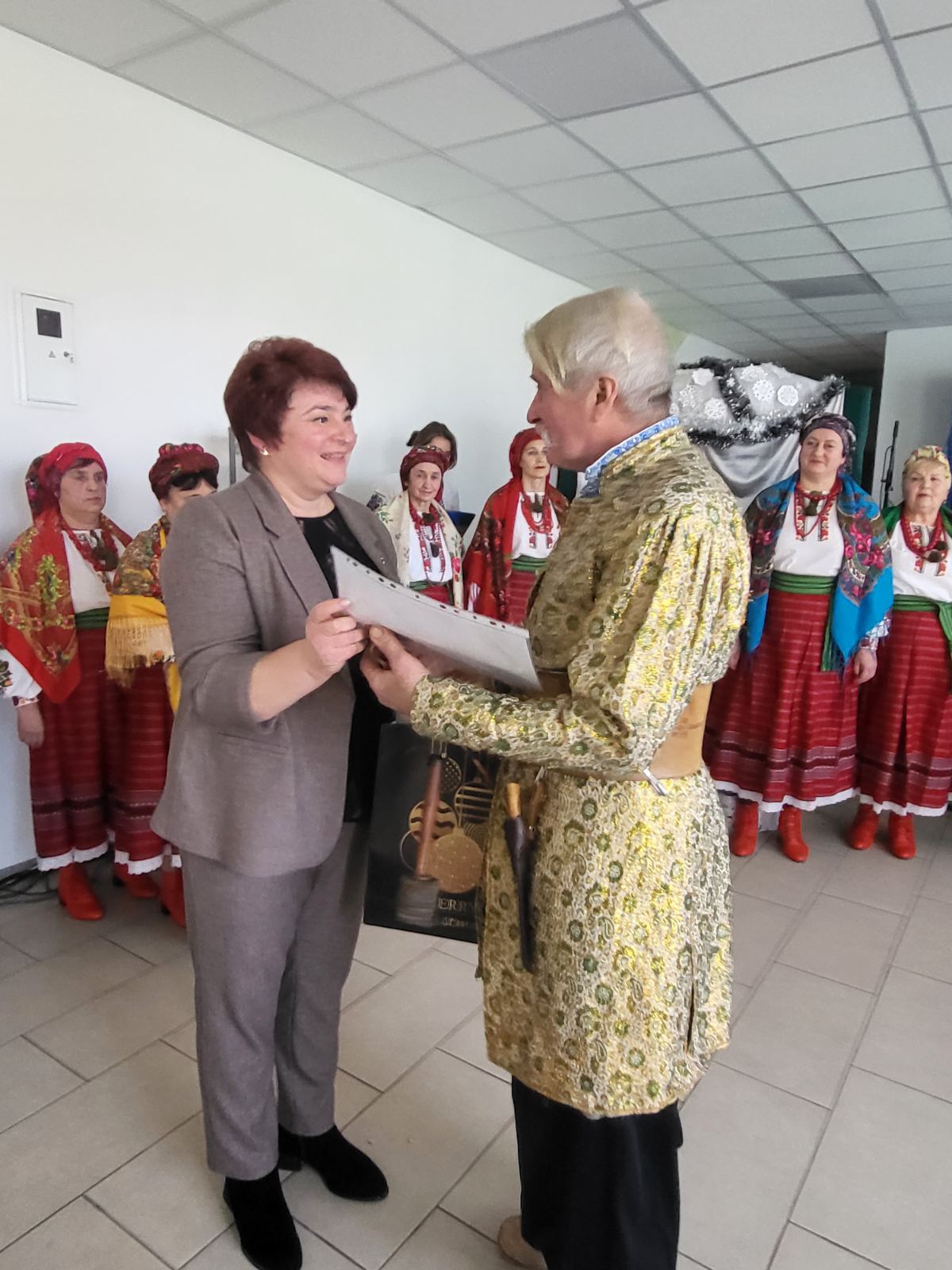 🤝 Голова громади Олена Штефан подякувала всім учасникам заходу за збереження народних традицій, активну культурну діяльність та вручила грошові сертифікати на розвиток аматорських колективів як знак підтримки та вдячності.
