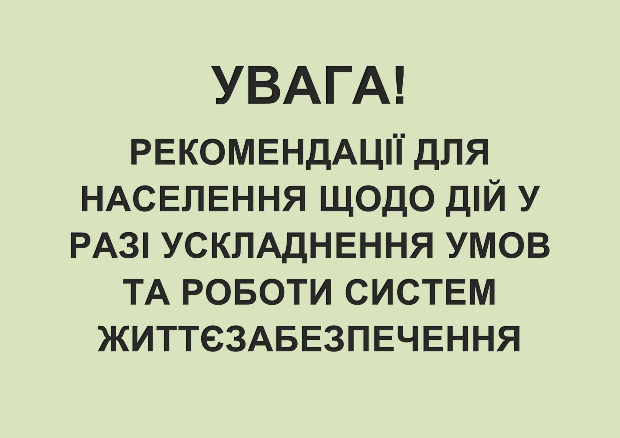 📢РЕКОМЕНДАЦІЇ ДЛЯ НАСЕЛЕННЯ ЩОДО ДІЙ У РАЗІ УСКЛАДНЕННЯ УМОВ ТА РОБОТИ СИСТЕМ ЖИТТЄЗАБЕЗПЕЧЕННЯ