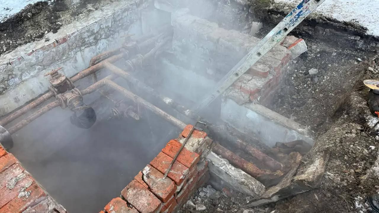 💨”Працюють, аж пар іде” – в цьому випадку далеко не образний вираз. Адже ремонтувати теплові мережі в такий мороз справа далеко не легка. Задіювати довелось і важку техніку, і чимало сил та робочих рук.