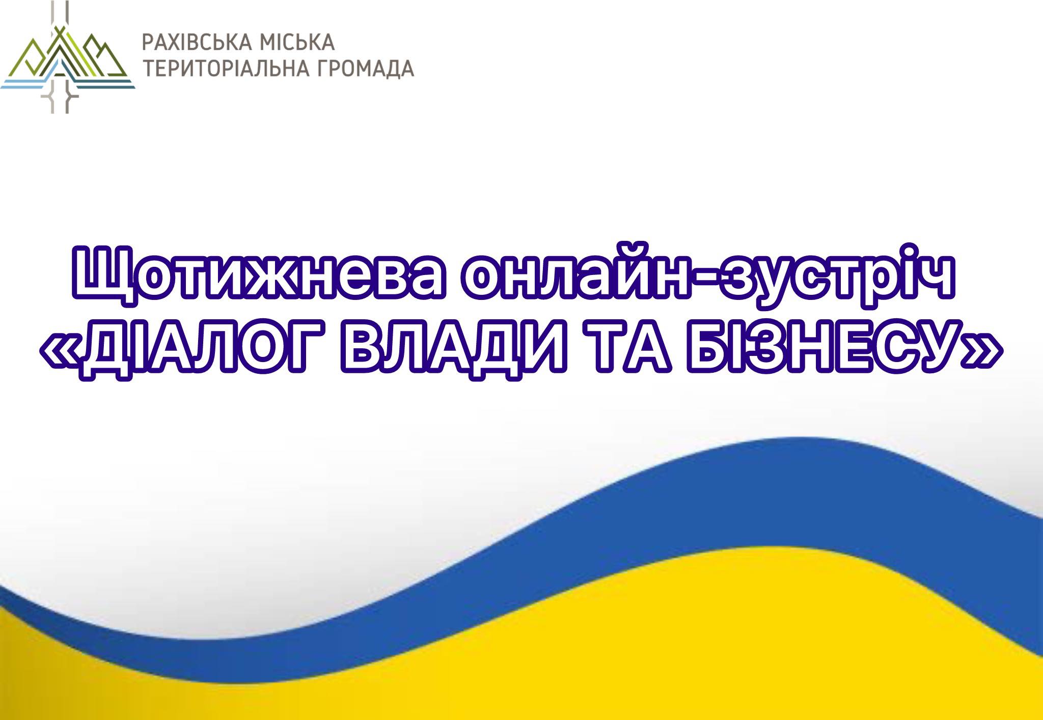 Рахівська міська рада інформує про щотижневі онлайн зустрічі «Діалог влади та бізнесу», які відбувається щотверга о 15:00.