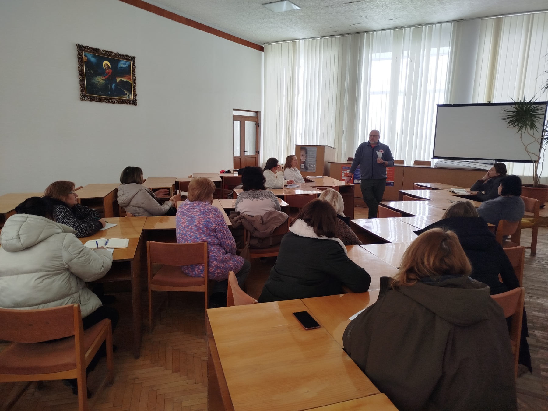 У приміщенні Гусятинської селищної ради відбулася зустріч із психологом Тернопільської обласної організації Товариства Червоного Хреста України, який провів тренінг на тему: «Реінтеграція ветеранів до цивільного життя. Особливості комунікації».