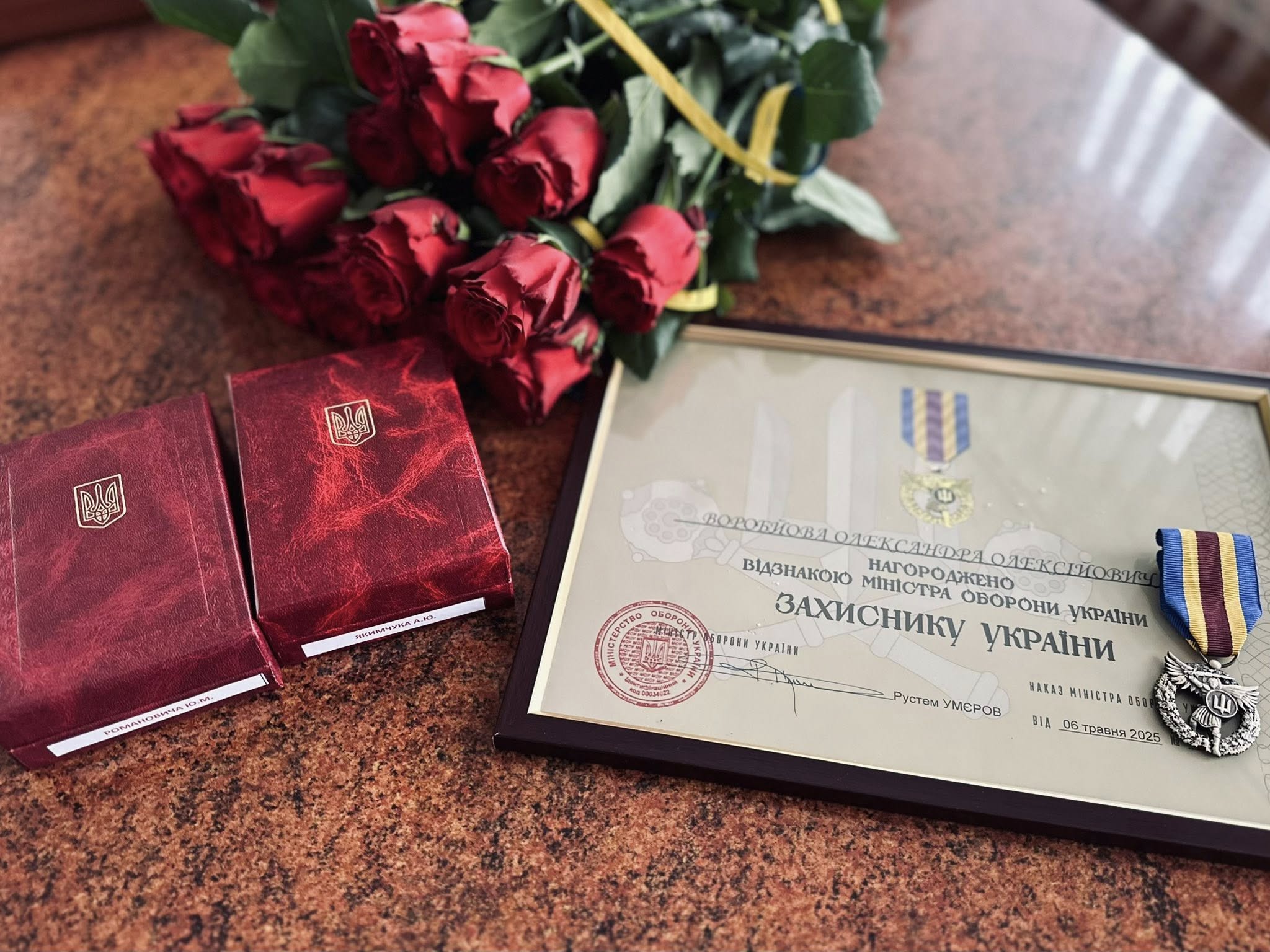 Медаллю Міністерства оборони «Захиснику України» нагороджено Олександра Воробйова. Це заохочувальна відзнака Міністерства оборони України військовим, добровольцям, волонтерам та іншим громадянам за мужність, відданість, захист суверенітету та особисті заслуги.