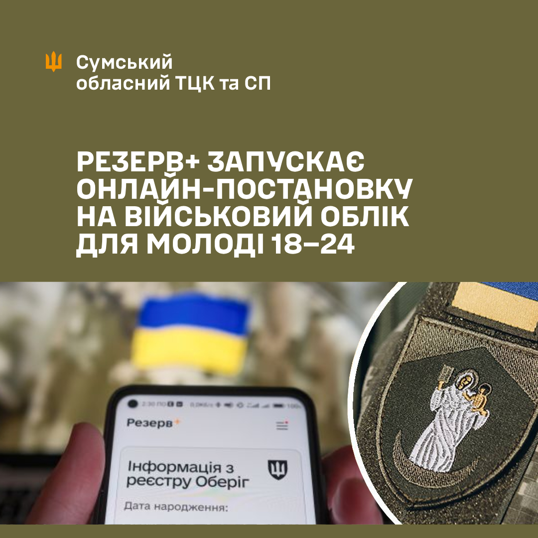 Розпочато тестування онлайн-постановки на військовий облік у застосунку Резерв+ для чоловіків віком 18–24 роки.