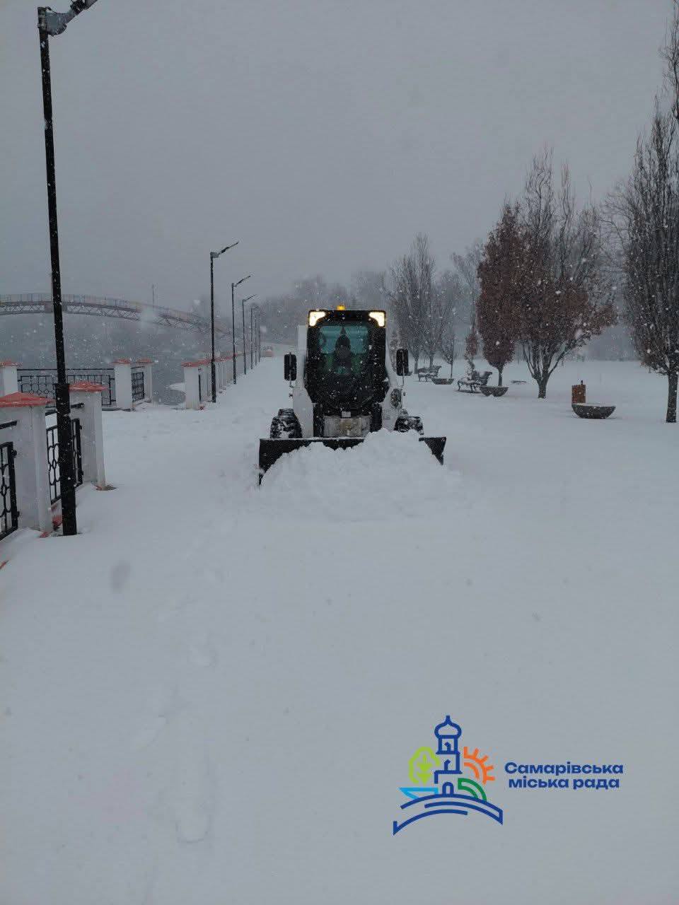 Крім того, КП “Комсервіс” розчищає проїзди та проходи у житлових кварталах. КП “Благоустрій міста” прибирає сніг на площі Героїв та в парку імені Сучкова.