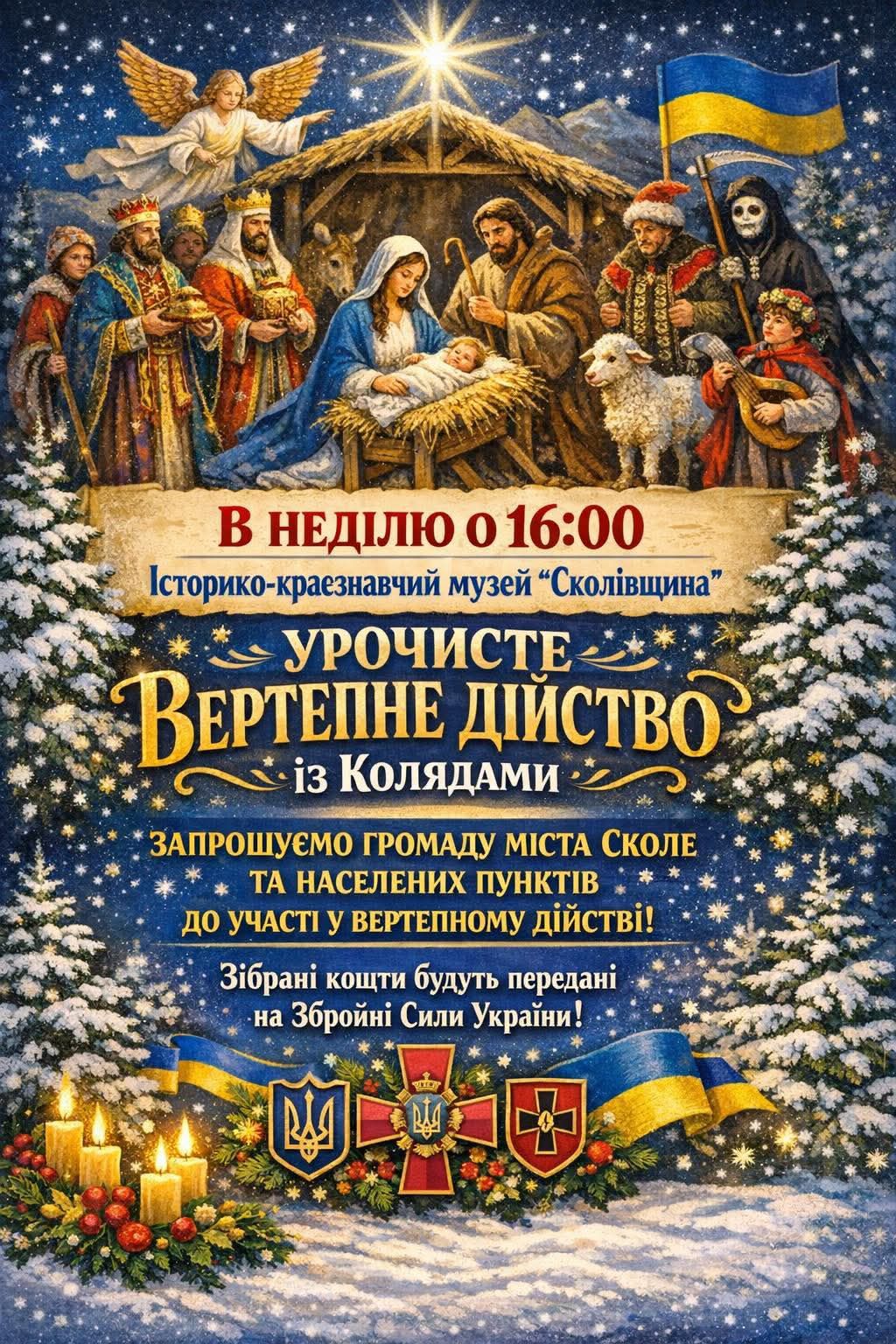 У неділю, 28 грудня, о 16:00 в Історико-краєзнавчий музей “Сколівщина”Сколівська міська рада Львівської області відбудеться урочисте вертепне дійство з колядами.