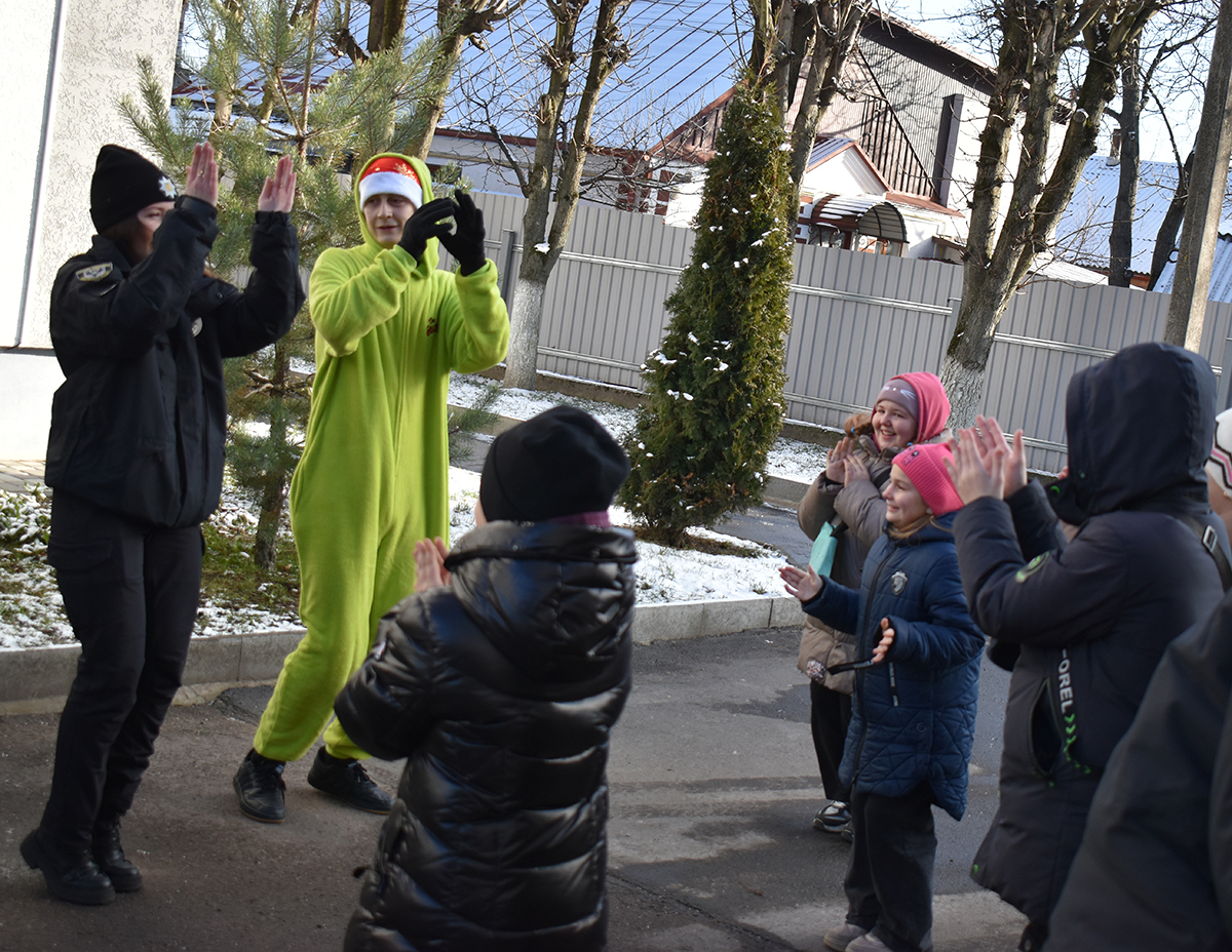 Діти отримали теплі вітання зі святами, а у відповідь подарували господарям щирі різдвяні колядки. Навіть Грінч зрештою приєднався до святкування 😉