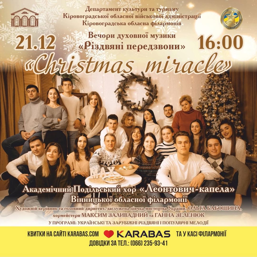 Кропивничани почують відомі українські та світові різдвяні хіти і класику, що перенесуть у атмосферу справжньої казки.