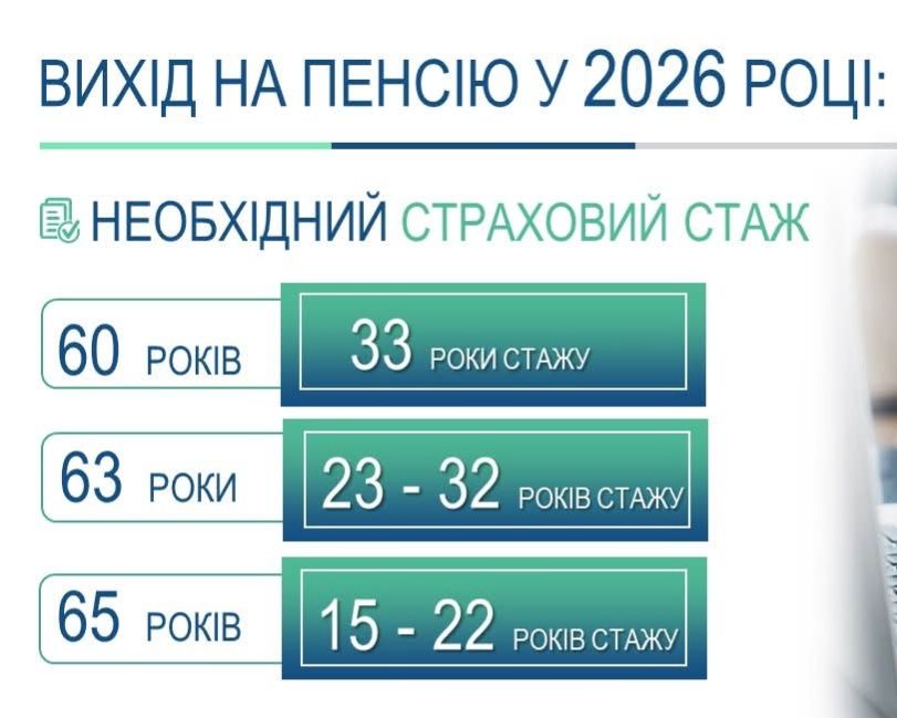 СКІЛЬКИ СТАЖУ ПОТРІБНО ДЛЯ ВИХОДУ НА ПЕНСІЮ У 2026 РОЦІ❓