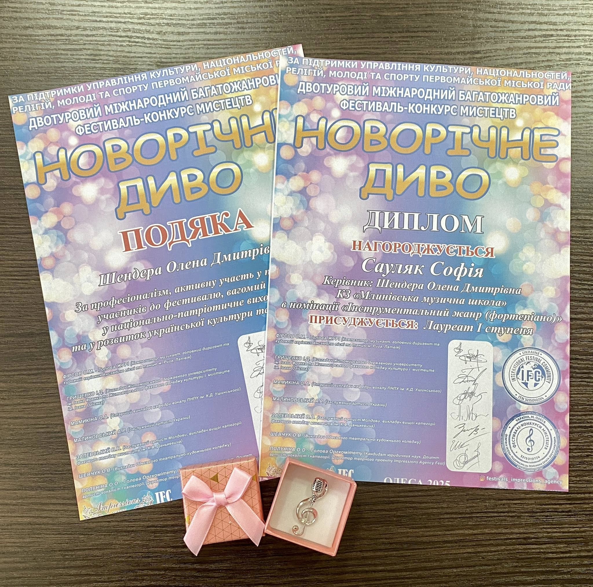 КЗ “Млинівська музична школа” під наставництвом викладача Шендери Олени Дмитрівни/ Олена Шендера здобула перемогу та отримала Диплом Лауреата І ступеня у Двотуровому міжнародному багатожанровому фестивалі – конкурсі мистецтв «Новорічне диво» у номінації «інструментальний жанр, фортепіано».