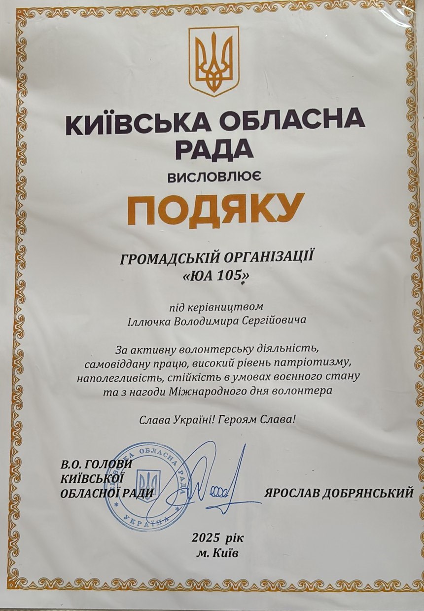 Громадська організація UA105, створена нашими земляками під керівництвом Олександра Іллючка, з перших днів повномасштабного вторгнення підтримує Збройні Сили України медикаментами, обладнанням та технікою.