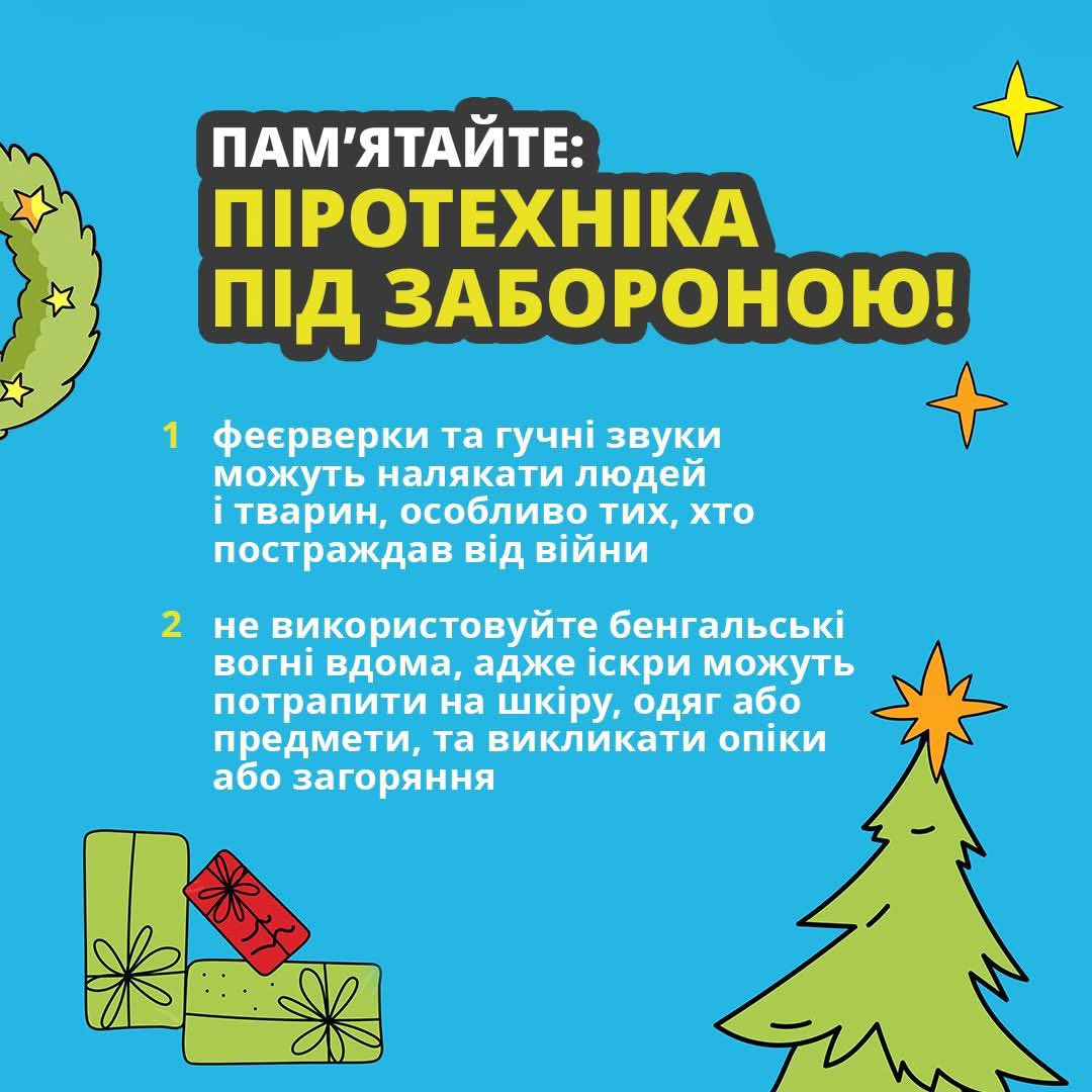 💥❌ Памʼятайте, в Україні діє заборона на використання піротехніки! Гучні звуки можуть лякати людей і тварин, які переживають жахи війни.