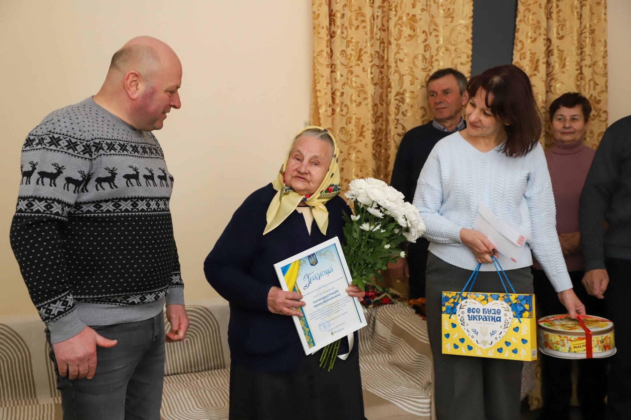 З глибокою шаною та великою вдячністю завітали до оселі іменинниці голова Стрижавської громади Михайло Демченко, начальниця відділу соціального захисту та соціального забезпечення Ольга Тютюнник, староста Сосонського старостинського округу Микола Демченко, директорка Сосонського ліцею Людмила Кугай та педагогічний колектив закладу. Привітали ювілярку, вручили грамоту та подякували за багаторічну сумлінну працю, активну життєву позицію й вагомий особистий внесок у розвиток громади.