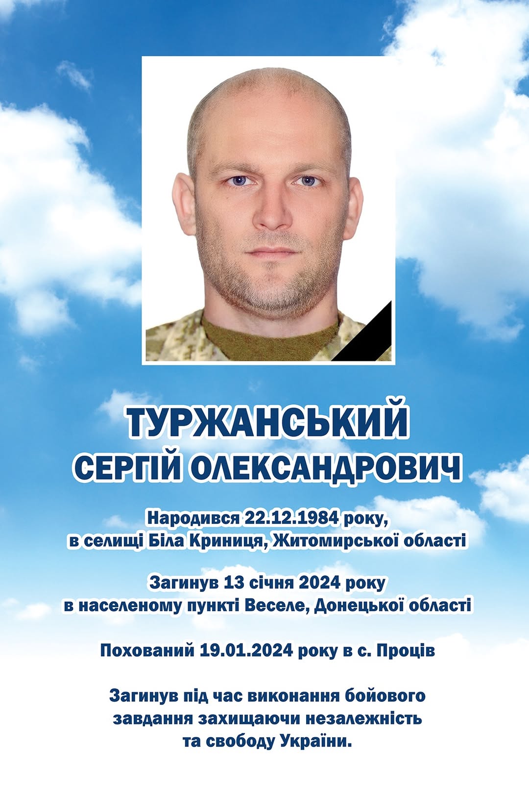 Вічна слава і вічна пам’ять Герою України — Туржанському Сергію Олександровичу.
