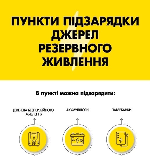 «🔌 Відсьогодні додатково розгорнули пункти підзарядки джерел резервного живлення.»
