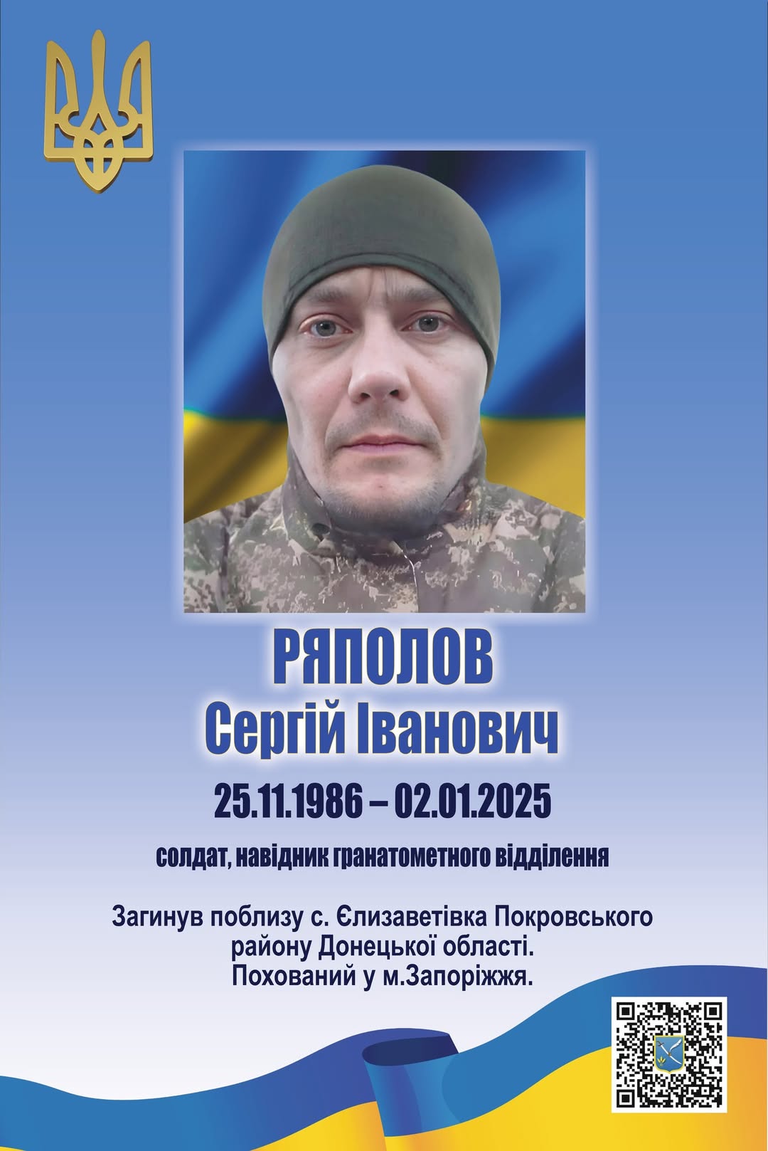 Сергій Іванович Ряполов віддав найдорожче – своє життя – за Україну, за нашу свободу, за право жити під мирним небом.