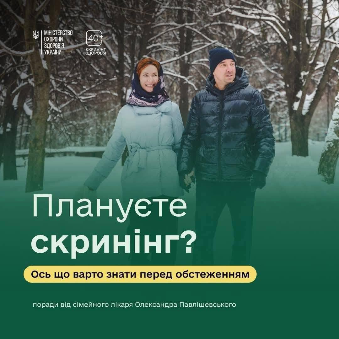 🤝 1 січня 2026 року в Україні стартувала програма «Скринінг здоров’я 40+», яка дає можливість українцям та українкам від 40 років перевірити своє здоров’я, оцінити індивідуальні ризики та разом із лікарем визначити, на що варто звернути увагу.