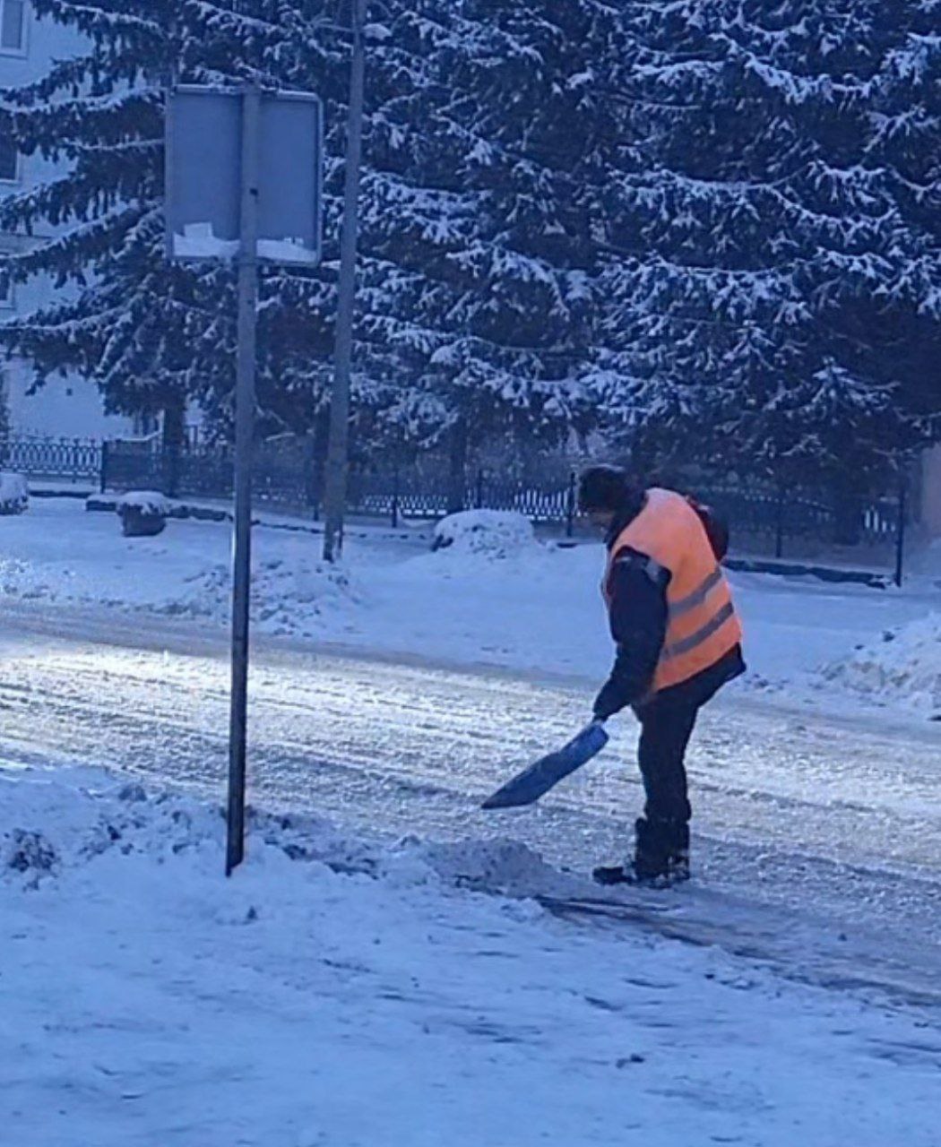 🧹З 7-ї ранку до роботи приєдналися двірники. Їхнє завдання – пішохідні переходи, місця зупинки транспорту та найбільшого скупчення людей. Там, де техніка не пройде, працюють руки та лопати.