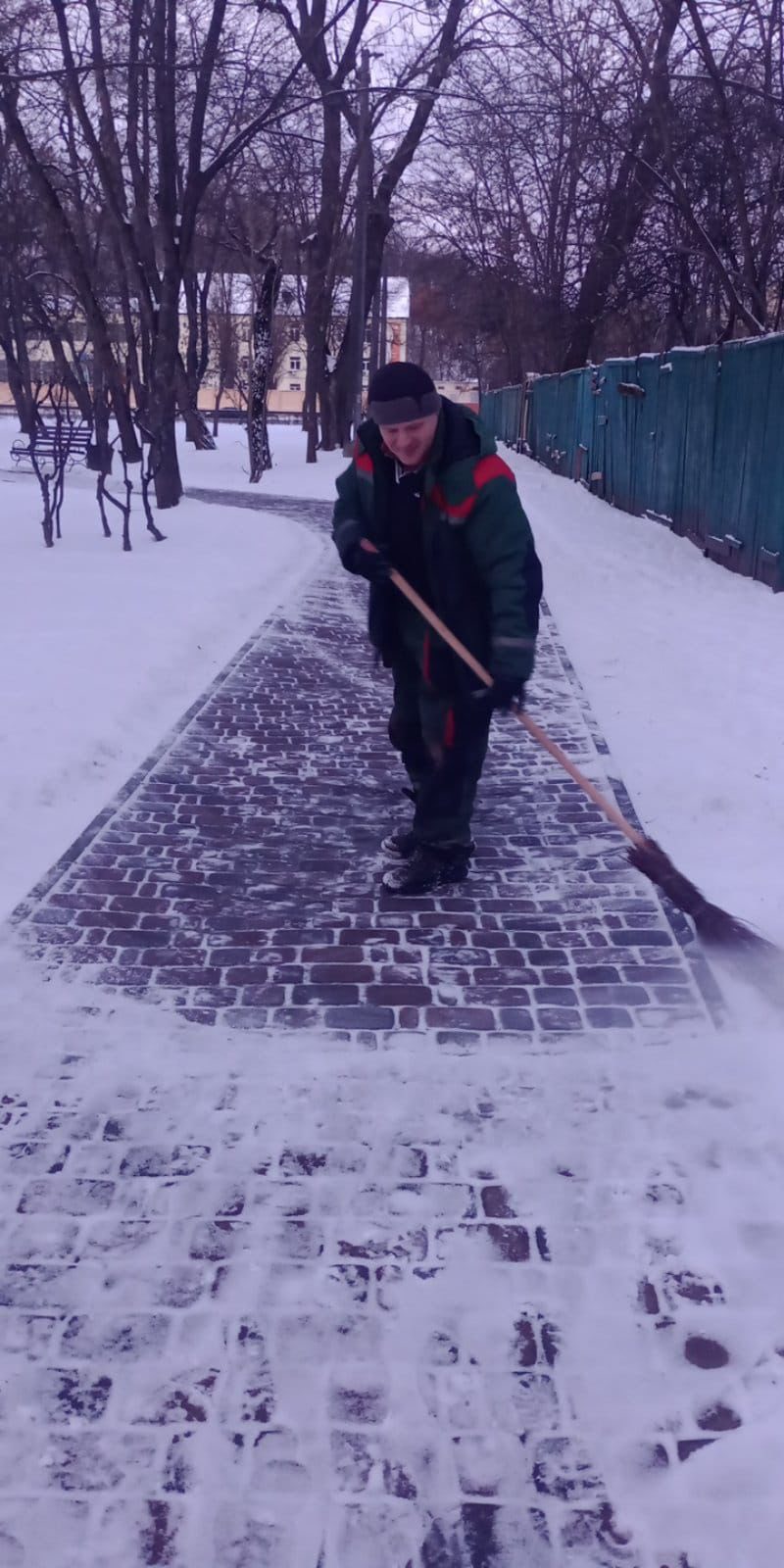 КП УЗН Голосіївського району очищає парки та сквери. Задіяно 74 працівники служби та 6 одиниць техніки. Використовується піско-соляна суміш і сіль.