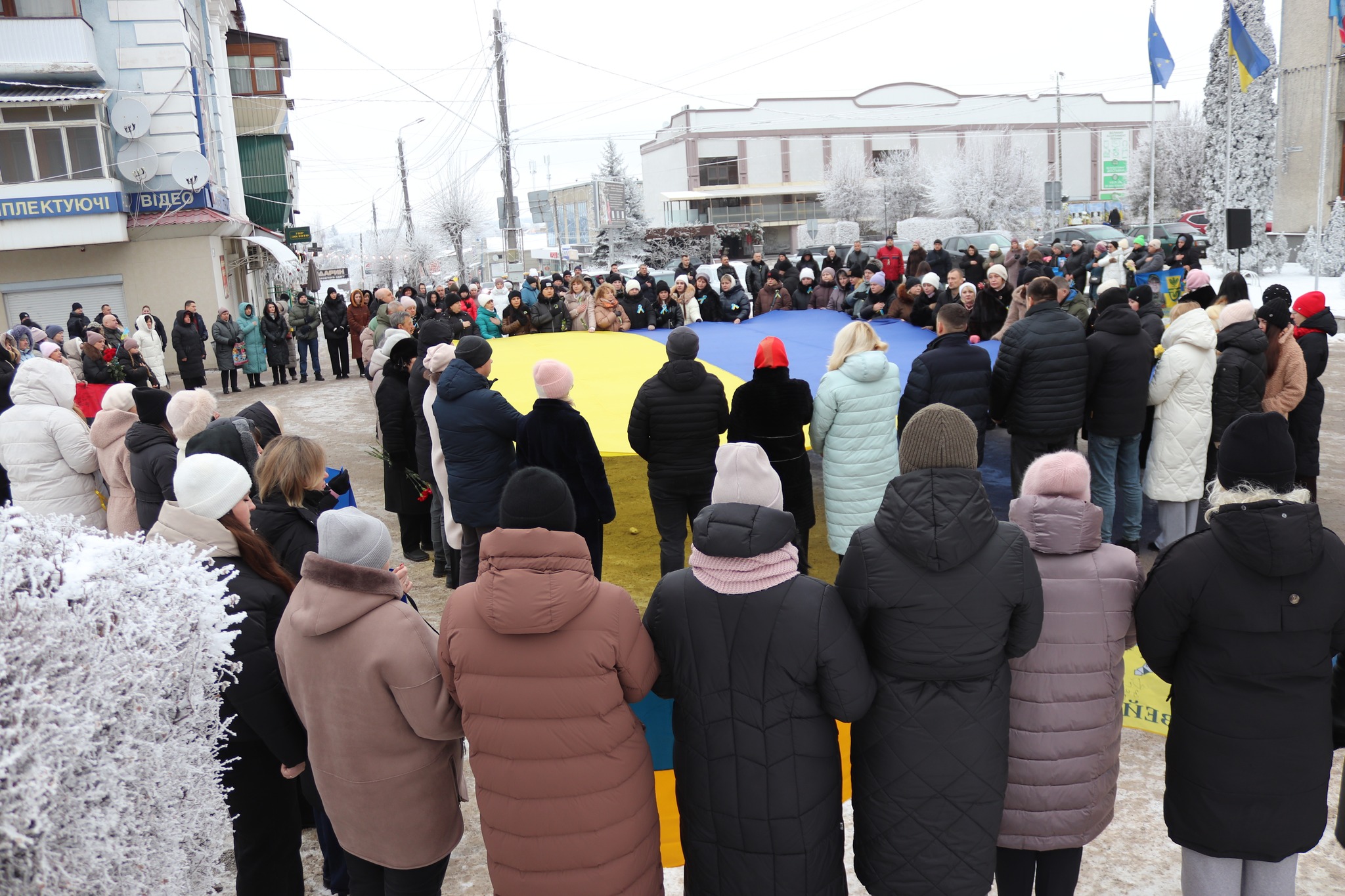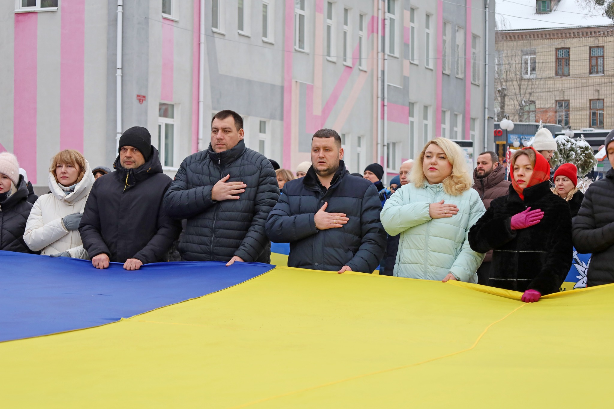 Учасники акції долучилися до загальнонаціональної хвилини мовчання, низько схиливши голови в журбі, вшанувавши пам’ять усіх, хто загинув у боротьбі за незалежність України.