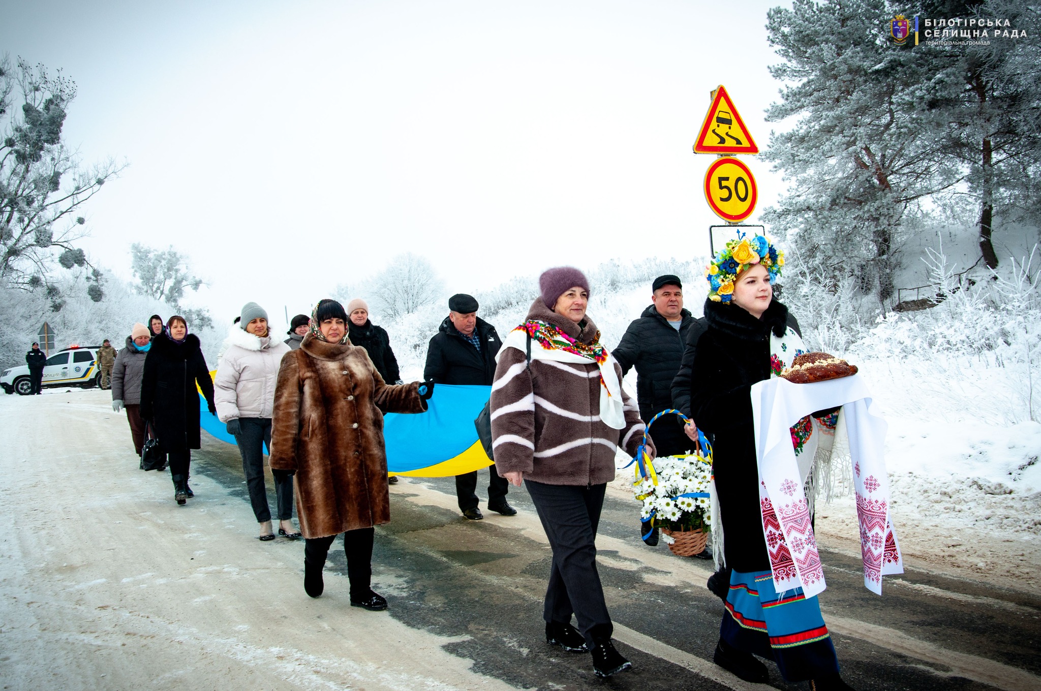 Заступник Білогірського селищного голови Роман Муляр та Шумський міський голова Вадим Боярський привітали присутніх та обмінялися короваями. Під час урочистостей було наголошено на особливій важливості єдності українців у сучасній боротьбі за незалежність та територіальну цілісність нашої країни.