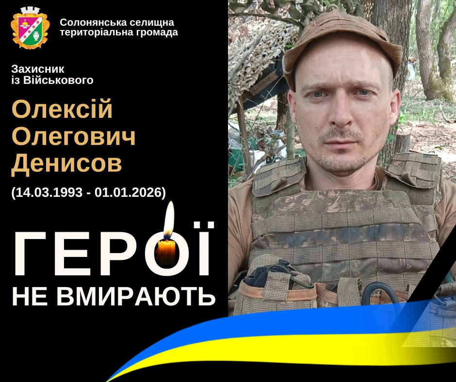 З невимовним болем у серці повідомляємо: у бою за Україну, її свободу та незалежність загинув наш земляк — Денисов Олексій Олегович, мешканець села Військове.