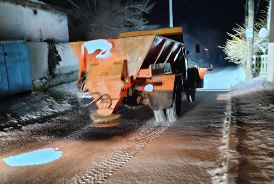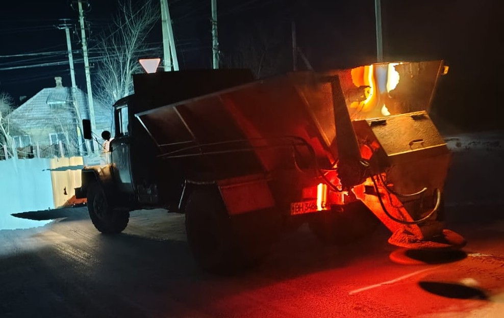 🚜 Автомобілі з устаткуванням для підсипки піщано-сольовою суміші та обладнані відвалами, з вечора 23 січня та зранку 24 січня розчищали проїжджу частину магістральних вулиць міста.
