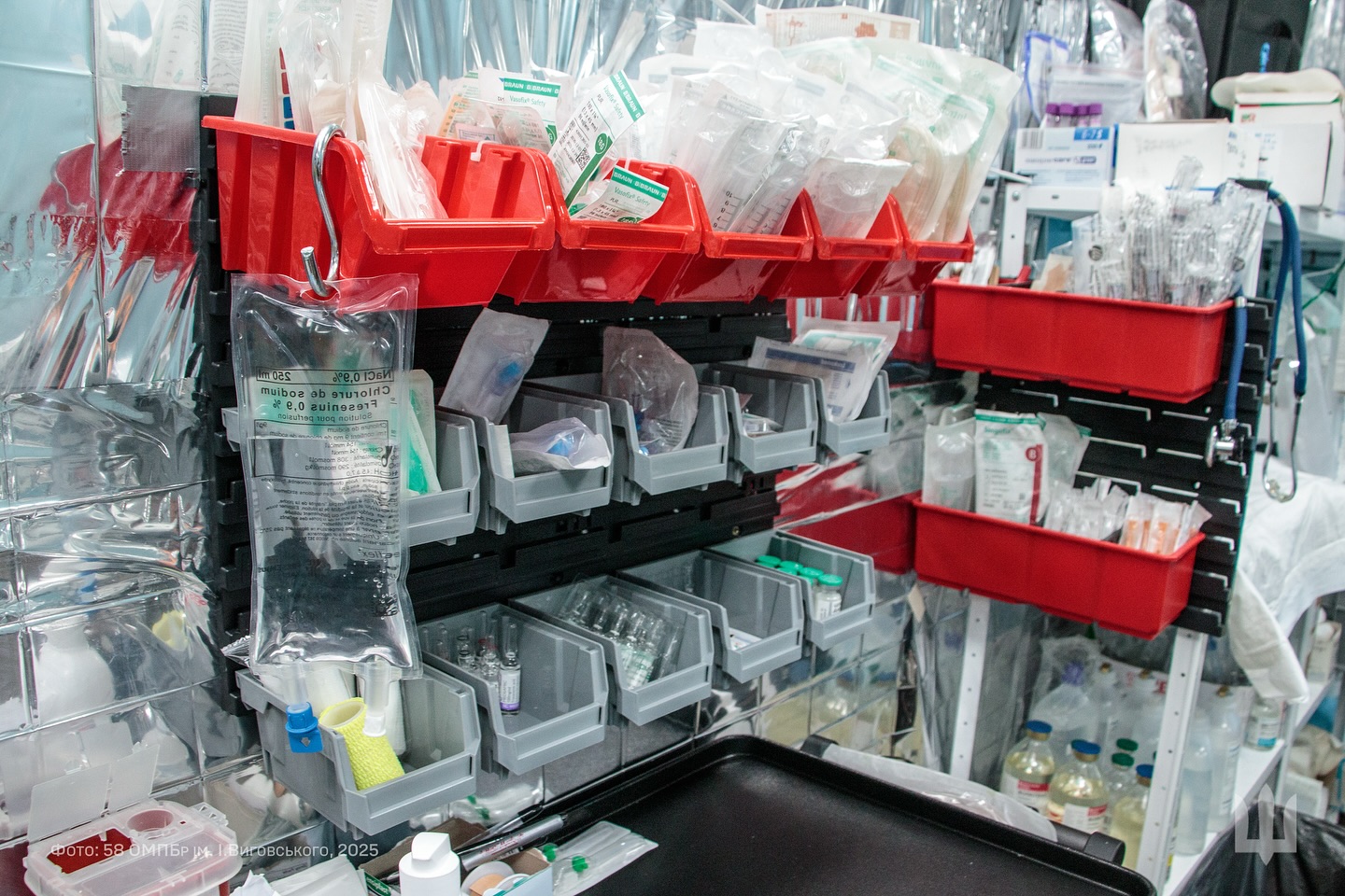 На стабпункті все розкладено по місцях і має своє чітке призначення: препарати, ампули, інфузійні розчини, перев’язувальні матеріали, прилади моніторингу – кожен елемент доступний миттєво. Тут немає дрібниць, адже саме від цієї впорядкованості залежить швидкість надання допомоги й стабілізація пораненого перед евакуацією🫡