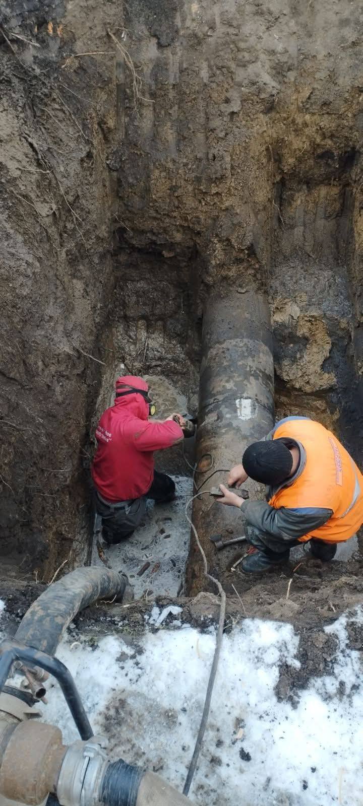 Умови були складними: чавунна труба лопнула навпіл, частину робіт фахівці “Комсіті”. виконували буквально у воді.
