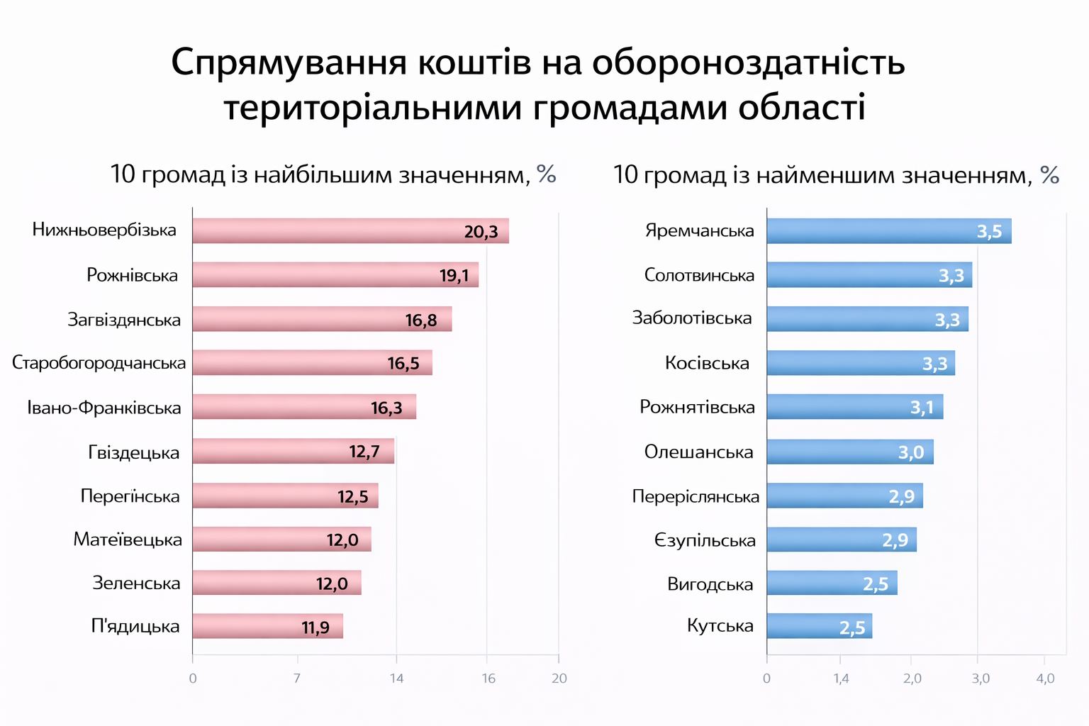 Старобогородчанська громада посіла четверте місце серед 62 громад Івано-Франківської області за часткою видатків місцевого бюджету, спрямованих на сектор оборони та допомогу Збройним Силам України (за даними звіту Івано-Франківської обласної державної адміністрації за січень–вересень 2025 року).