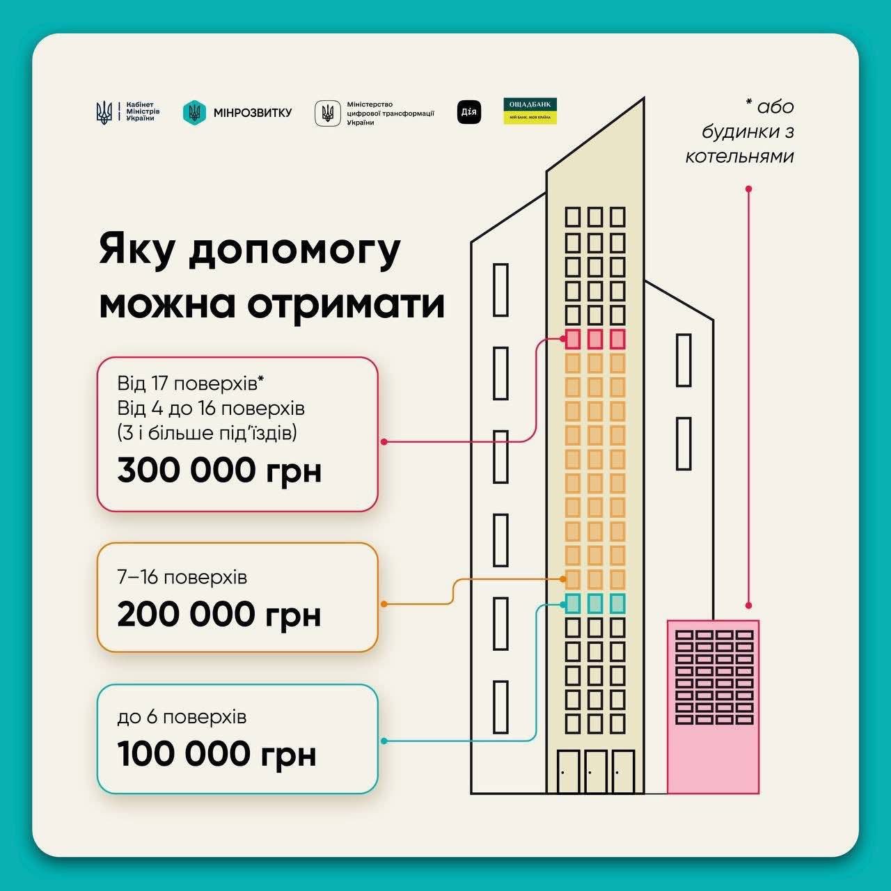 Стартує програма «СвітлоДім»: держава виділяє 100–300 тисяч грн для ОСББ, кооперативів та управителів на придбання генераторів, акумуляторів, інверторів та іншого енергообладнання.