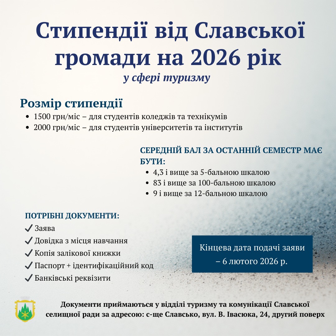 Стипендії для студентів Славської громади на 2026 рік: подайте заяву – отримайте…