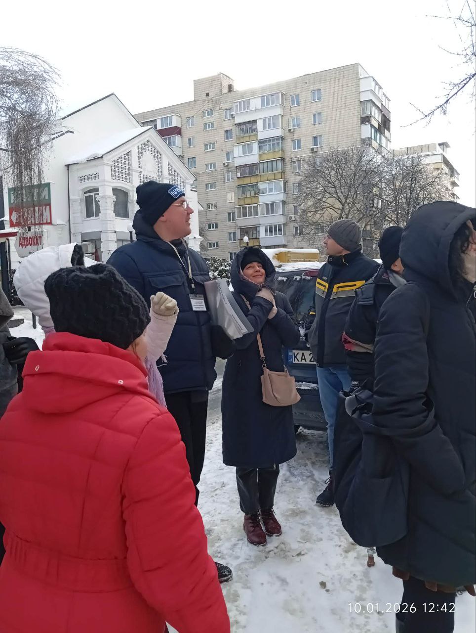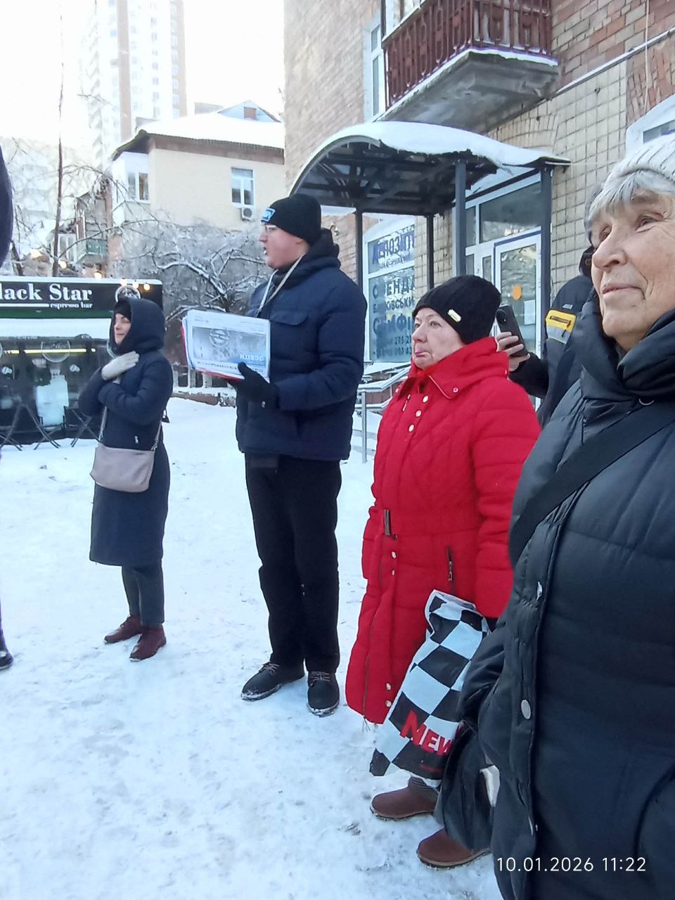 ❄️ Суботній ранок 10 січня зібрав біля Книгарні “Є” на початку вулиці Освіти понад 20 екскурсантів. Морозний, але й добряче сонячний ранок, після чергового варварського обстрілу Києва росіянами, збадьорив і довів кожному, що поряд є плече однодумця і Центральна бібліотека Солом’янки імені Григорія Сковороди, місія якої – єднати.