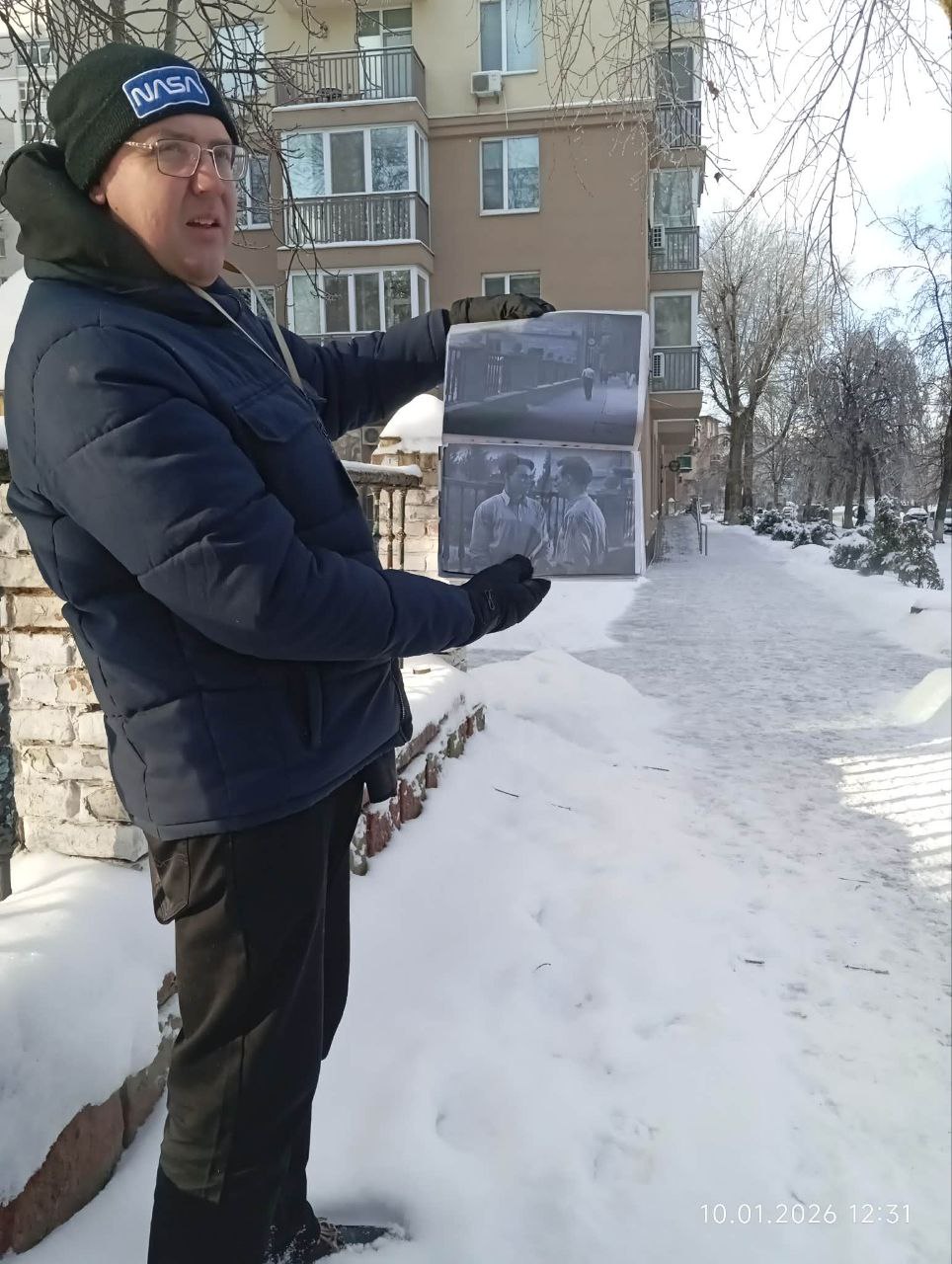 🎬 Відпочивши ж у гостинній читальній залі, незамерзущі мандрівники продовжили подорож. І недаремно. Бо між будинками № 16 та 18 знайшли точне місце, де у 1958 році знімали сцени зараз забутого, а колись досить відомого фільму “Вулиця молодості”.