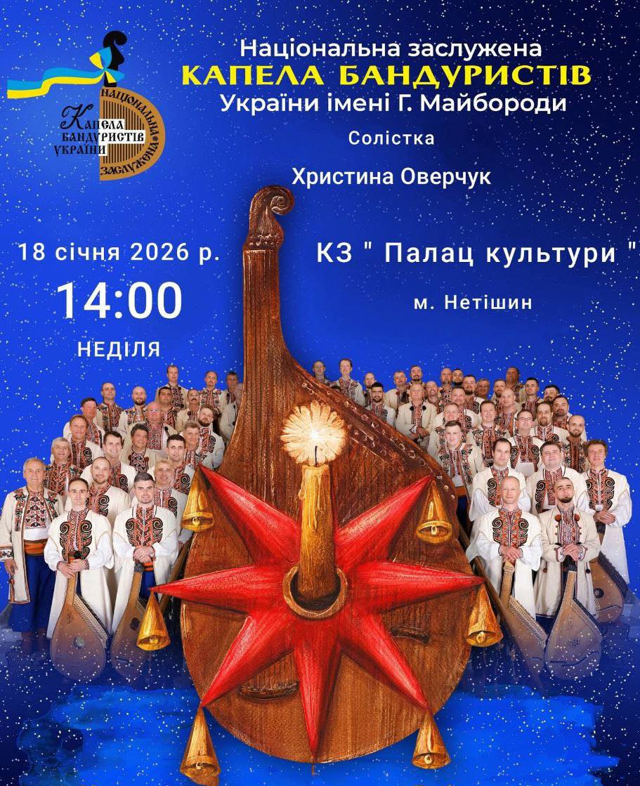 18- січня 2026 року маєте можливість почути живе виконання колядок та щедрівок у різдвяній програмі під супровід Бандури та чоловічого співу.