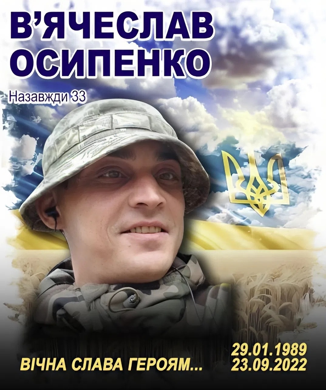 🕯️ Схилімо голови у скорботі у День народження загиблого захисника України – В’ячеслава Вікторовича ОСИПЕНКА.