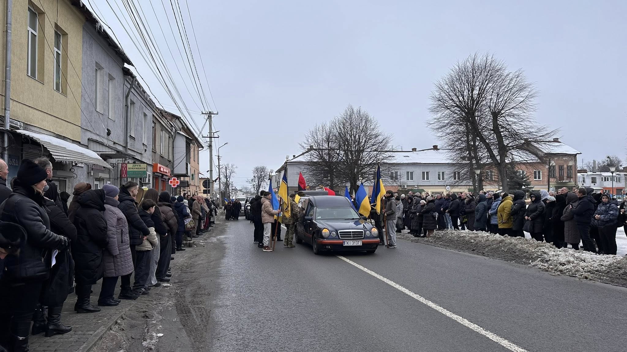 Зі схиленими головами та навколішки жителі громади зустріли Героя спочатку у місті Великі Мости. Потому скорботний кортеж вирушив до рідного села Захисника, де відбувся парастас.